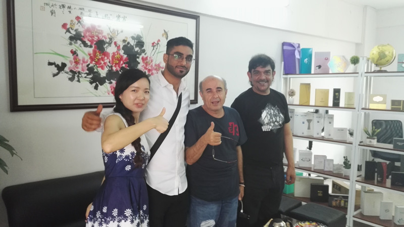 Raji, il direttore generale della Global Perfumes Industry FZE degli Emirati Arabi Uniti, è venuto a visitare la nostra fabbrica con il suo assistente nel 2017. Voleva fare una cosa speciale scatole di profumi progettate per rendere unico il suo marchio.