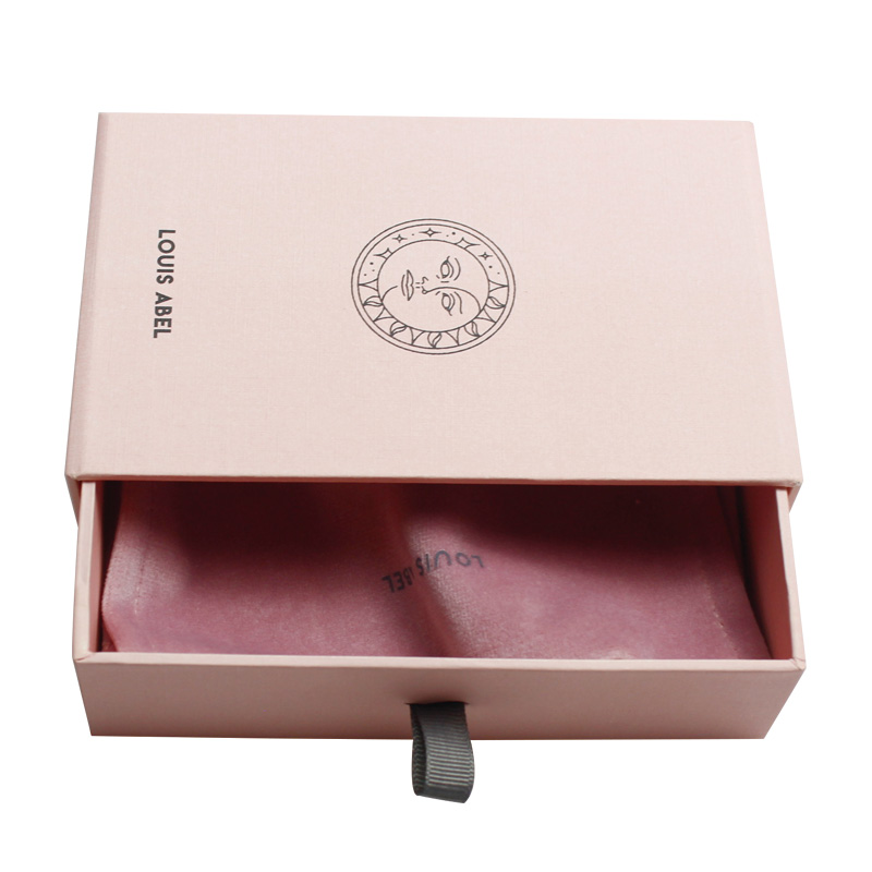 È un scatola scorrevole per gioielli in stile vendita calda che ha fatto con carta speciale color rosa + cartone grigio da 1200 g , pieno di stampa rosa sul davanti e sul retro con logo e testo, la stampa esterna corrisponde al motivo con texture speciale sulla scatola.