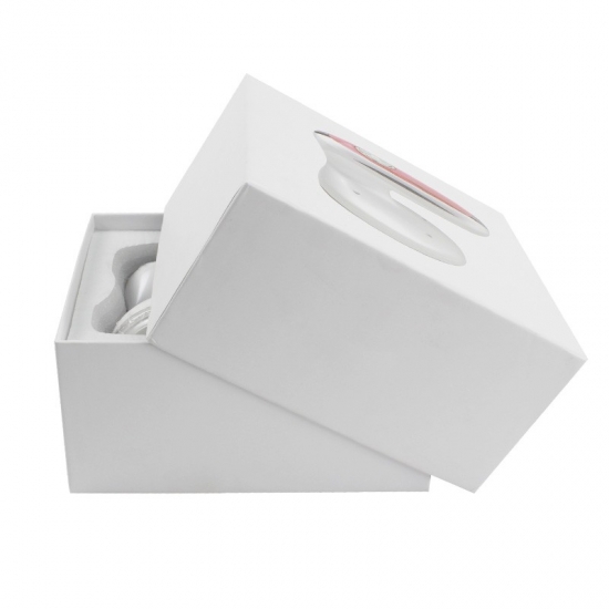 Questa scatola è stampata con il logo di uno strumento cosmetico elettronico. Mostra direttamente i prodotti ai clienti. Grazie all'inserto in EVA, lo strumento cosmetico è ben protetto da urti e vibrazioni. Le dimensioni sono 34 x 24 x 10 cm.