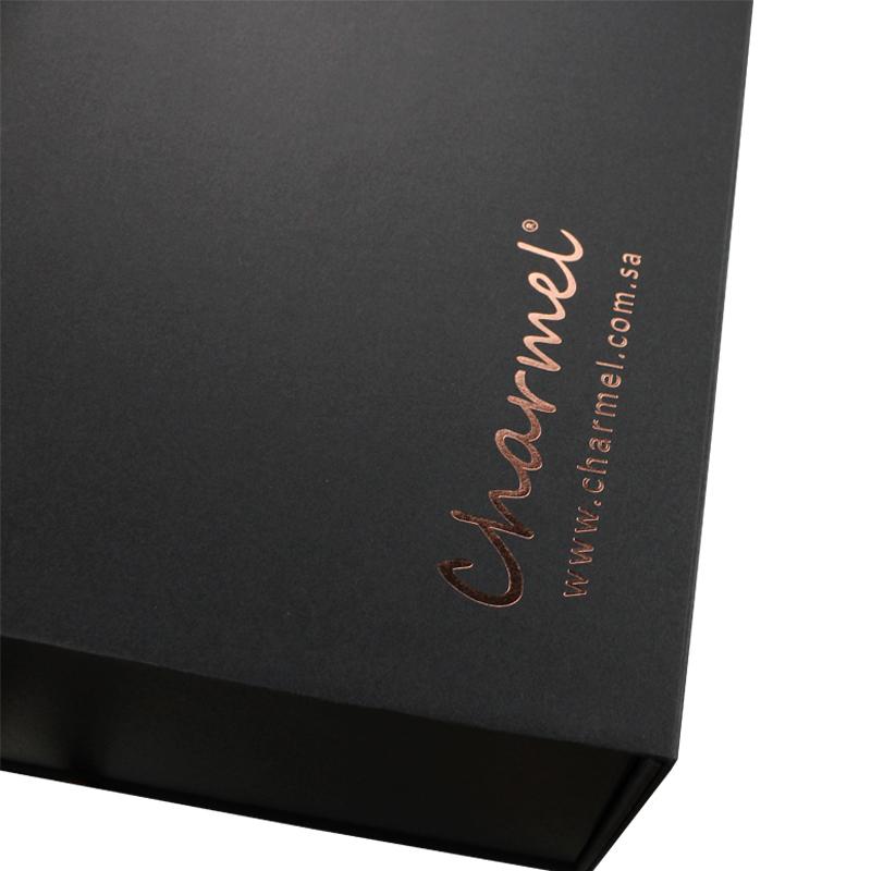 Nero di alta gamma scatole di imballaggio pieghevoli , per confezioni regalo promozionali del caffè, scatola regalo con logo in oro rosa.