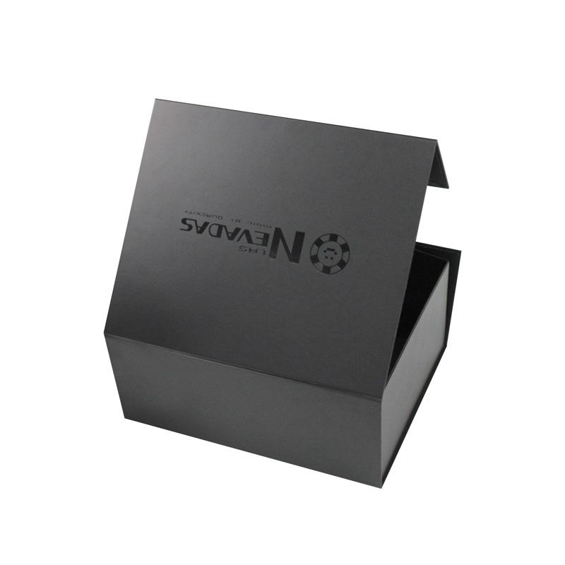 Normally 15-20 days after design/sampleScatola regalo pieghevole in carta nera con logo UV
