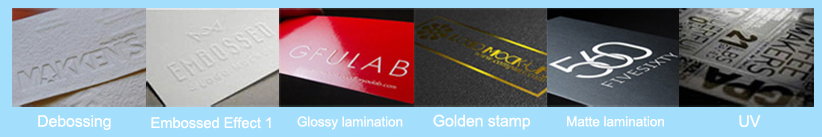 Sono disponibili laminati opachi/lucidi, stampati a caldo, goffrati/in rilievo, UV, ecc.