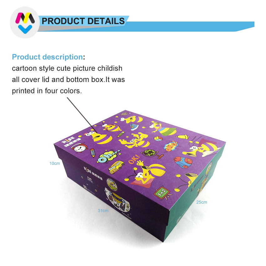 È uno stile cartone animato con un simpatico coperchio e una scatola inferiore per bambini ed è adatto per giocattoli, libri di fumetti e altro Prodotti per bambini.