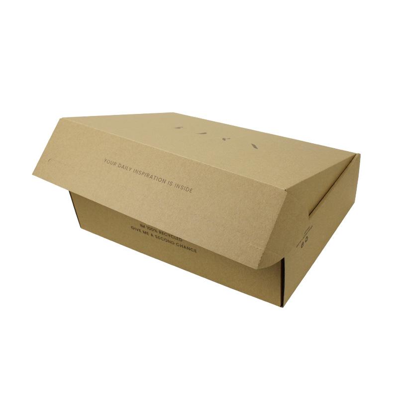 Questo è un Scatole per spedizioni e-commerce Realizzata in robusta carta flute a 3 strati, stampata con il logo aziendale e altre informazioni in nero. È un'opzione più economica rispetto alla stampa in quadricromia. La scatola può essere personalizzata con qualsiasi colore e con trattamenti diversi. Per ulteriori opzioni di colore, consultare il nostro elenco prodotti. scatola postale in cartone ondulato .