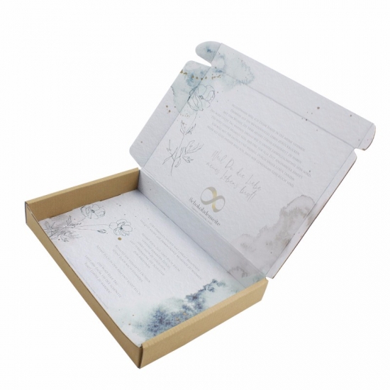 Questa è una scatola regalo di carta artigianale realizzato con flauto CCNB+BE da 300 g ,suo scatole regalo in cartone ondulato personalizzate all'ingrosso: rivestimento esterno in tinta unita marrone e stampa interna a colori.