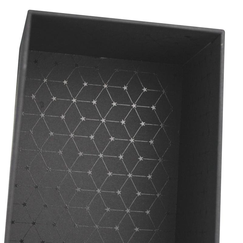 materiale della scatola: Cartoncino nero da 120 g/m² + cartoncino grigio da 1200 g/m² + cartoncino nero da 120 g/m² all'interno