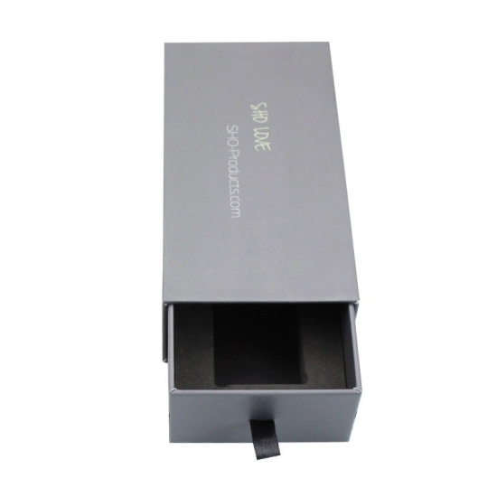 È un colore rosa imballaggio personalizzato per cassetti che ha fatto su carta patinata C2S + cartoncino grigio 1200g , pieno di stampa grigia sul lato anteriore e posteriore con logo e testo, l'imbottitura interna è realizzata in EVA nero di buona qualità.