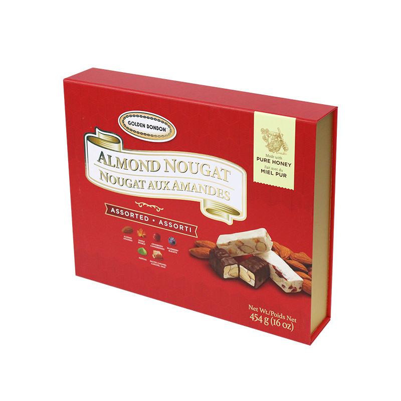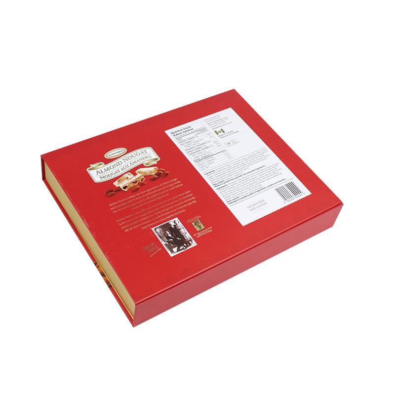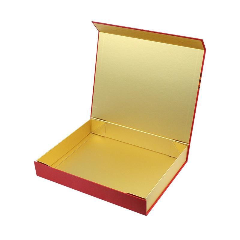 materiale della scatola: Carta oro metallizzato da 152 gsm, cartoncino grigio doppio da 2 mm montato con carta artistica C2S da 157 gsm + potenti magneti
