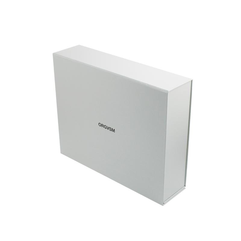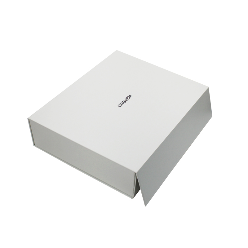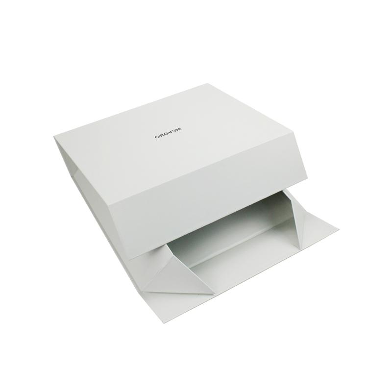 Bianco elegante scatole di stoccaggio pieghevoli con logo nero, semplice e generoso, adatto per abiti