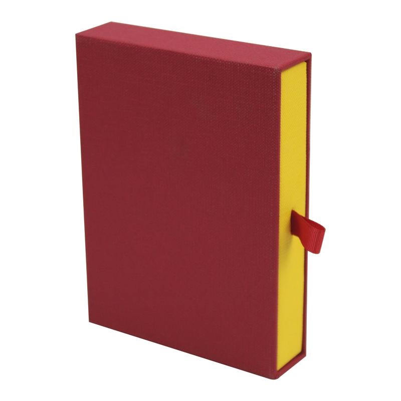 materiale della scatola: Carta speciale rossa da 120 g/m² + cartone grigio da 1000 g/m² + custodia in velluto, carta gialla interna da 120 g/m² montata su cartone grigio da 1000 g/m²