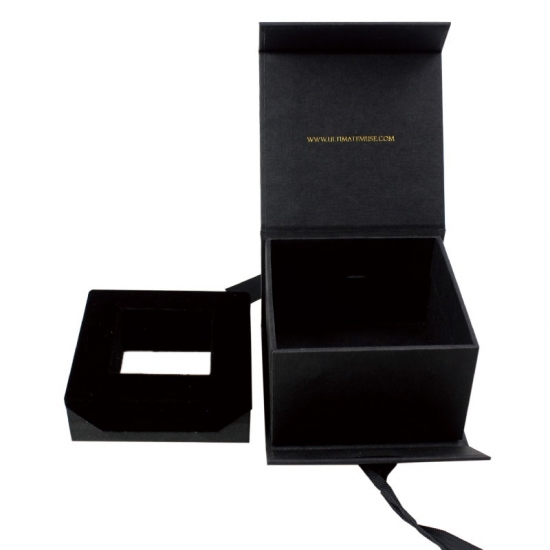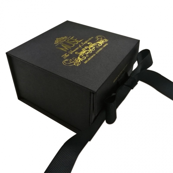 Scatola magnetica nera con logo personalizzato e nastro Scatole decorative con chiusura magnetica