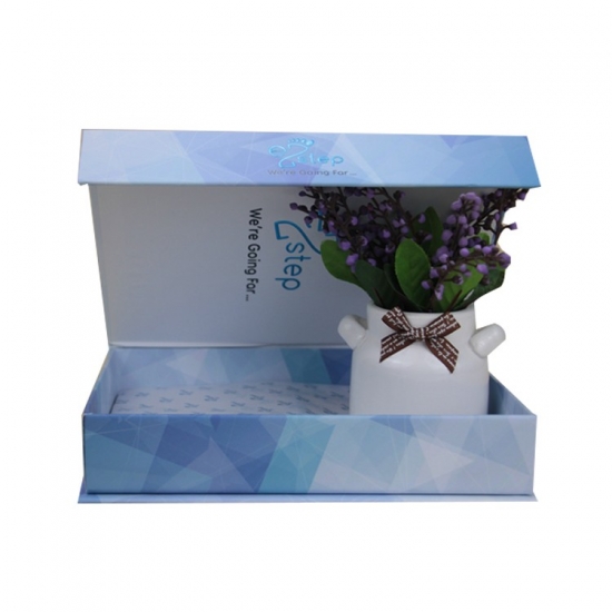 La scatola portaoggetti a forma di libro blu è stata realizzata con carta artistica C2S da 157 gsm laminata con supporto in cartone grigio da 2 mm, personalizzabile in qualsiasi dimensione, colore e logo, la finitura superficiale è stata laminazione opaca, rivestimento UV spot, stampa a caldo (colore blu), dimensioni della goffratura 20,1*16,1*4,1 cm