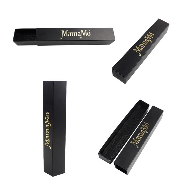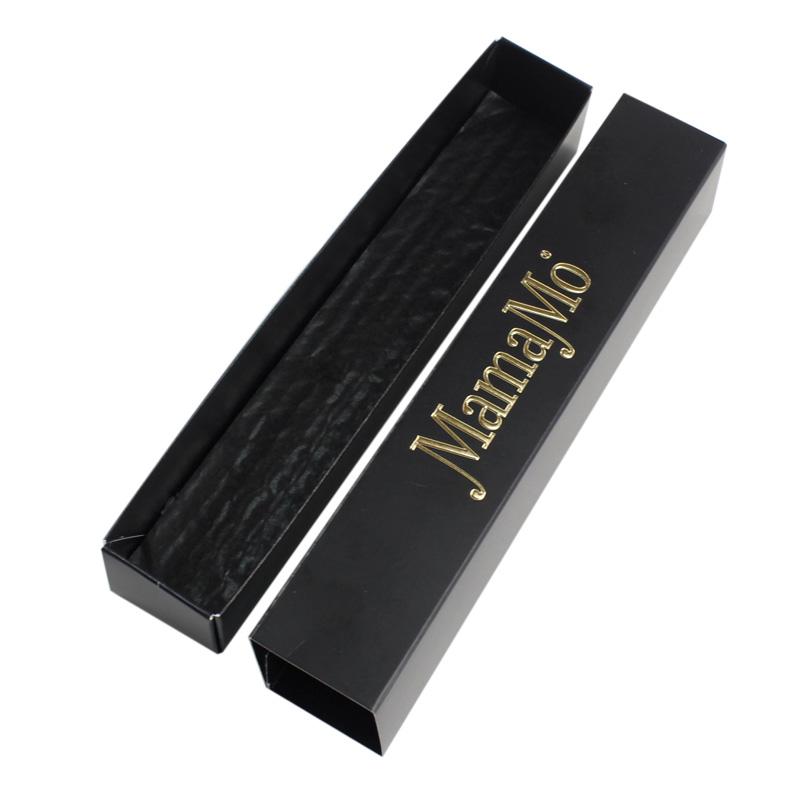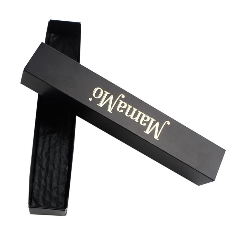 Questo è cassetto economico per cioccolatini scatola che ha fatto con carta patinata da 350 g, esterno della copertina in nero classico e logo sulla parte superiore in lamina d'oro stampato con goffratura che rende la scatola più pregiata, fondo della scatola con carta ondulata antiurto per proteggere i cioccolatini all'interno.