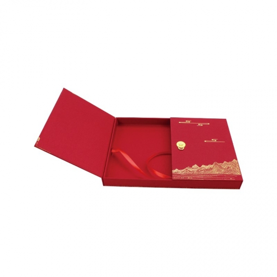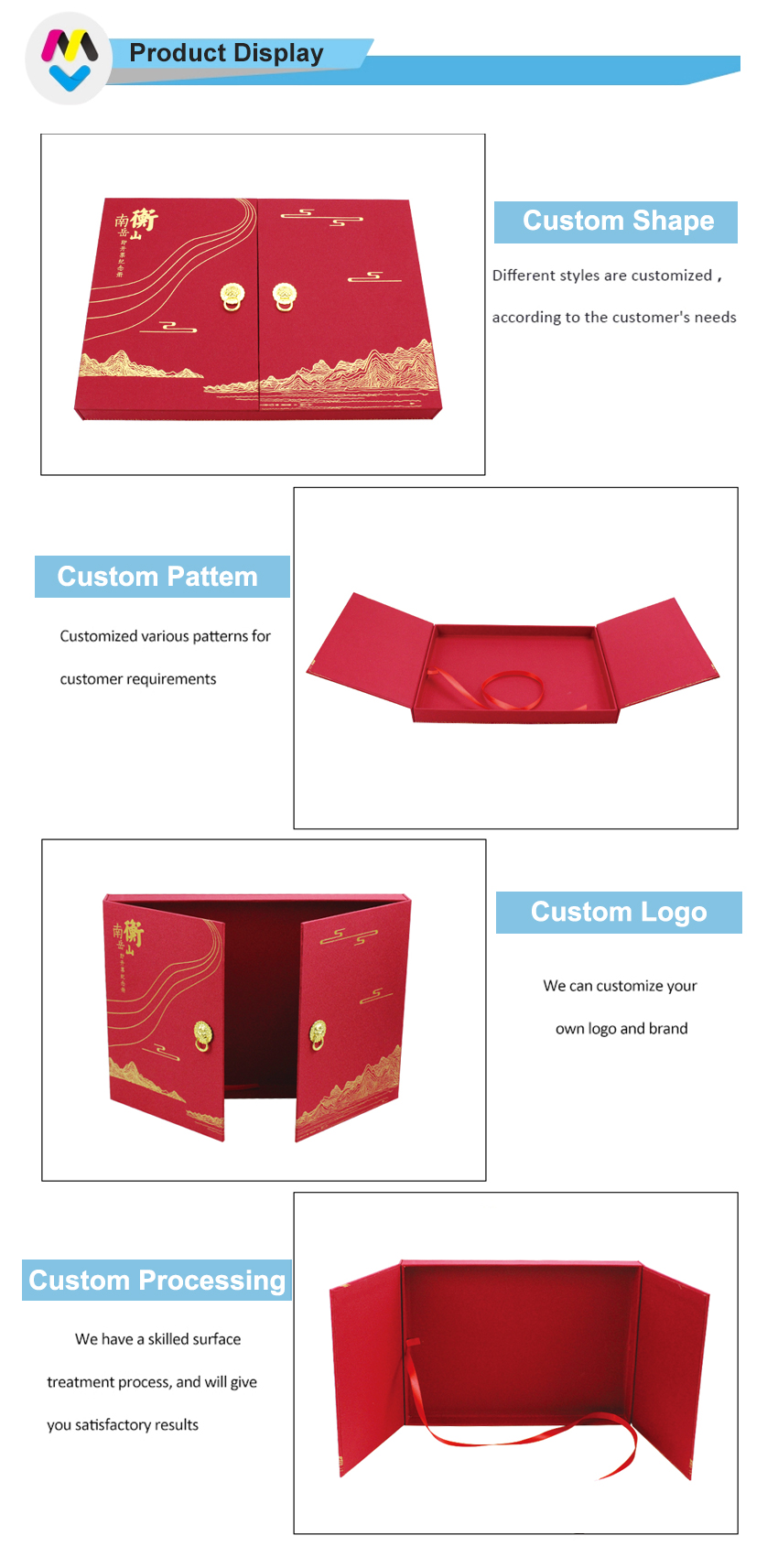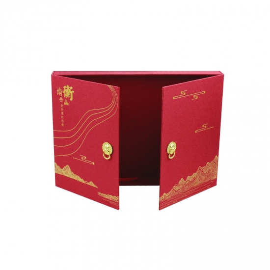 Scatola unica con design personalizzato e texture speciale, utilizza il classico rosso abbinato al nero per evidenziare il lusso.