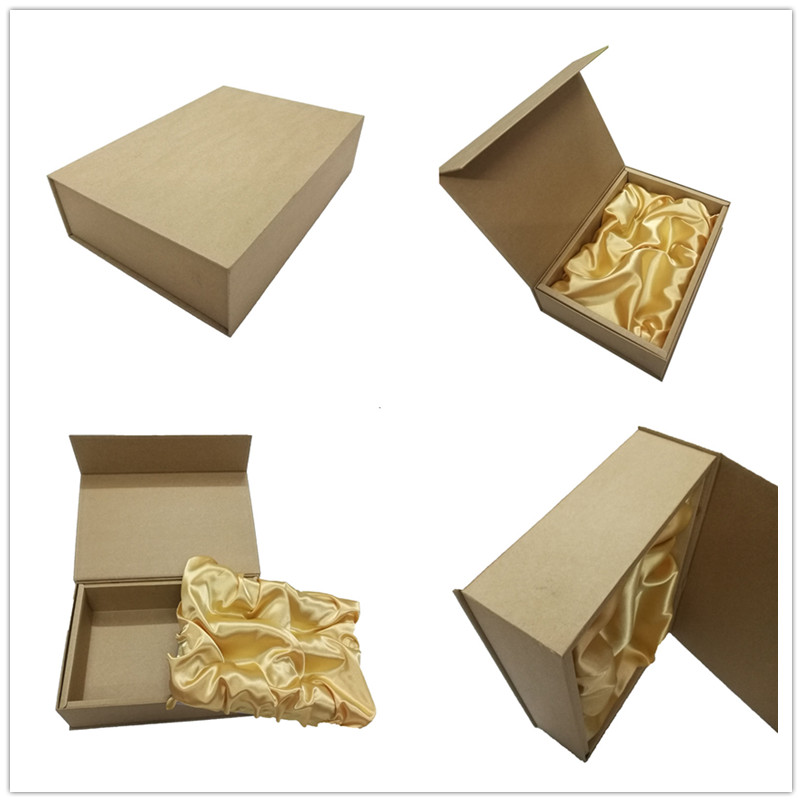 Scatola rigida personalizzata in carta kraft marrone con inserto in raso