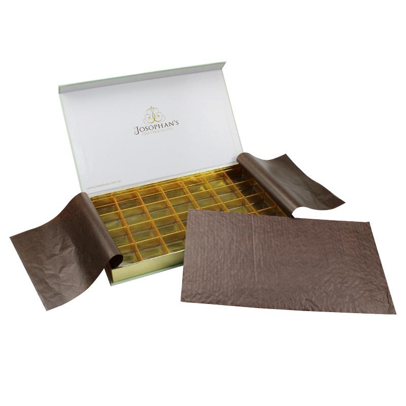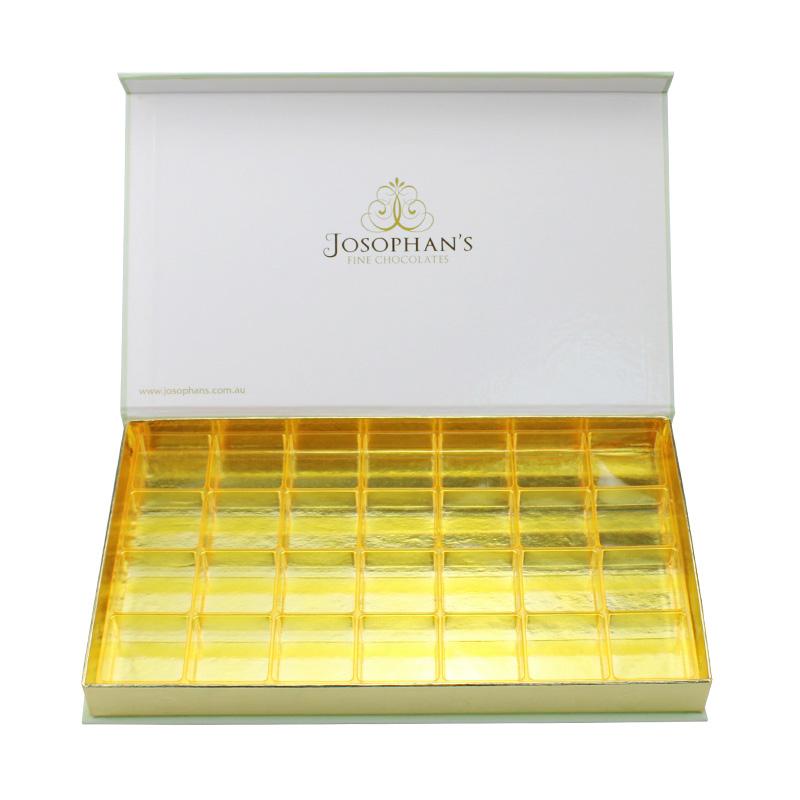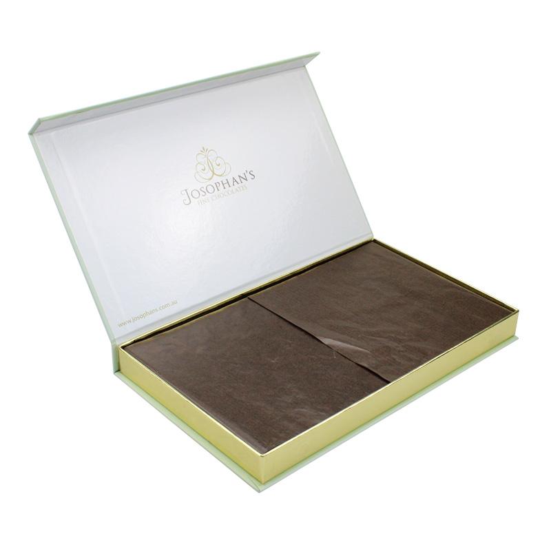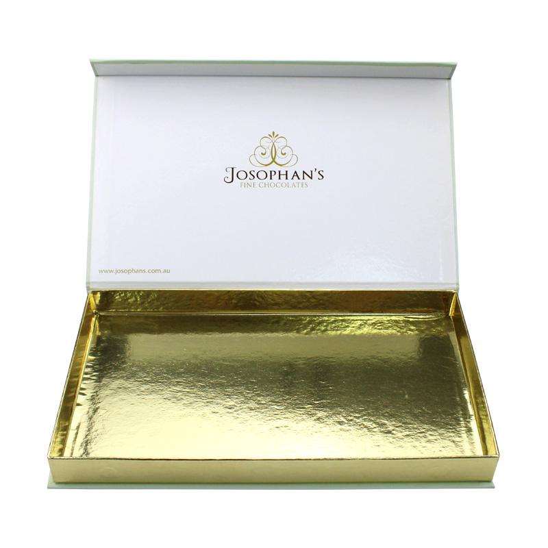 Il verde M scatola di imballaggio magnetica Per il cioccolato, ha un supporto interno in plastica e carta per fotocopie. Il prodotto, doppiamente protetto, non viene danneggiato. È un'ottima scatola per il confezionamento del cioccolato.