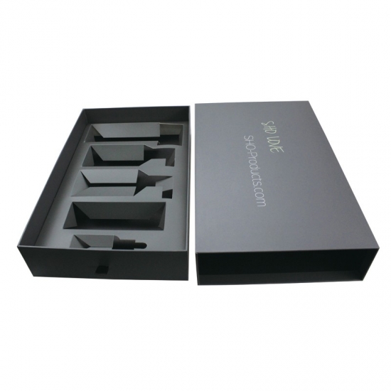 È una confezione regalo con cassetto scorrevole e tirante a nastro che ha fatto da 157 g di carta artistica C2S + 1200 g di cartone grigio all'interno della scatola ci sono dei divisori utilizzare buona qualità cartone tagliato e modellato in base alla forma del prodotto.