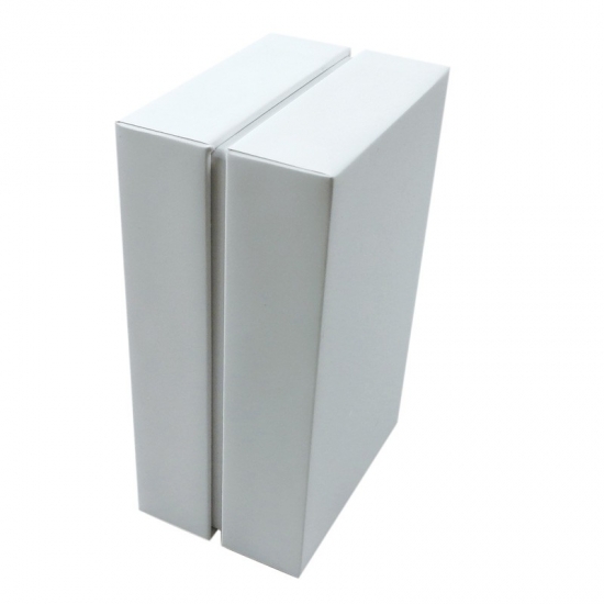 Questa è una scatola bianca semplice, robusta e personalizzata, realizzata con carta artistica C2S da 157 g + cartone grigio da 1200 g; la forma della protezione in EVA all'interno sarà modellata in base alle dimensioni degli oggetti che saranno contenuti nella scatola.