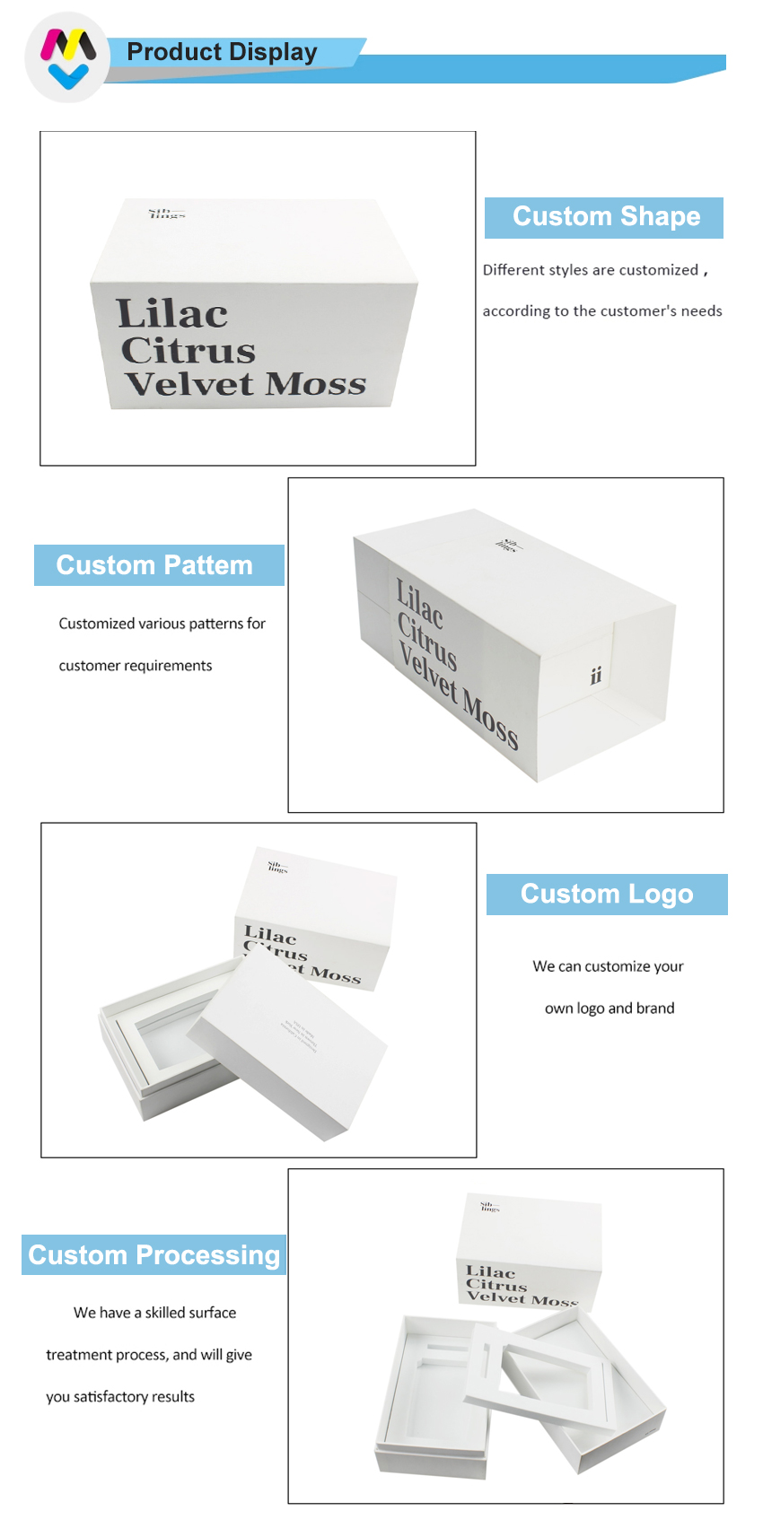 È possibile stampare il tuo logo o il tuo disegno sulle nostre scatole. |