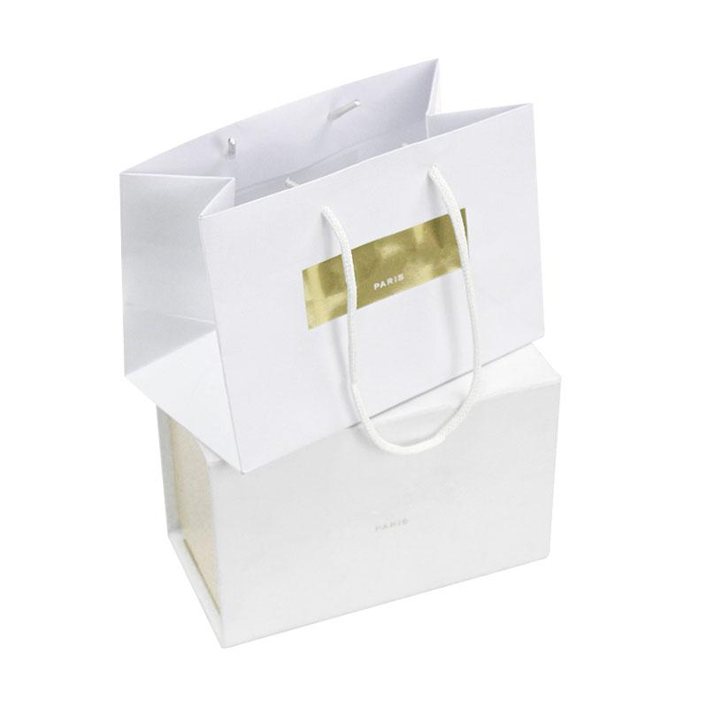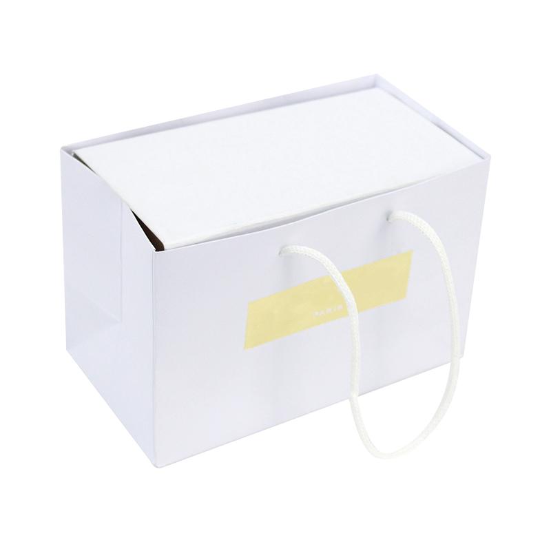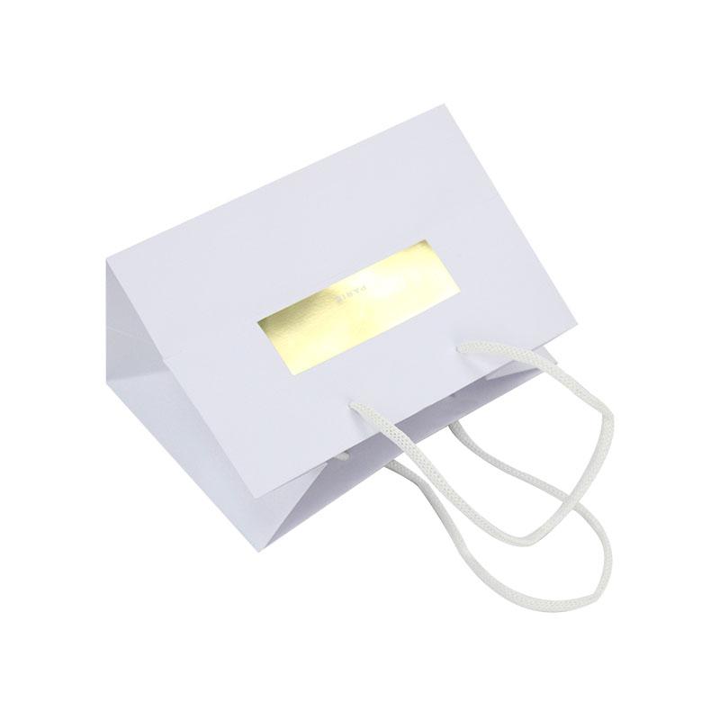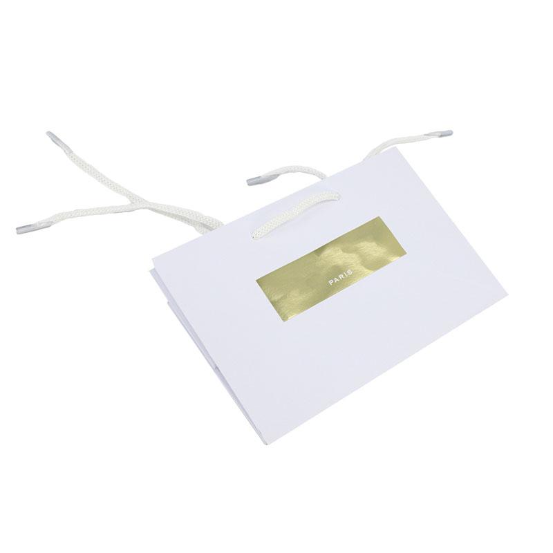 materiale della borsa: cartone bianco da 250 g/m² + manico in corda bianca con estremità in plastica