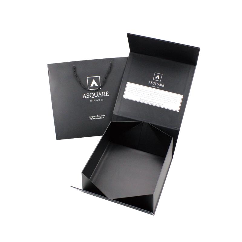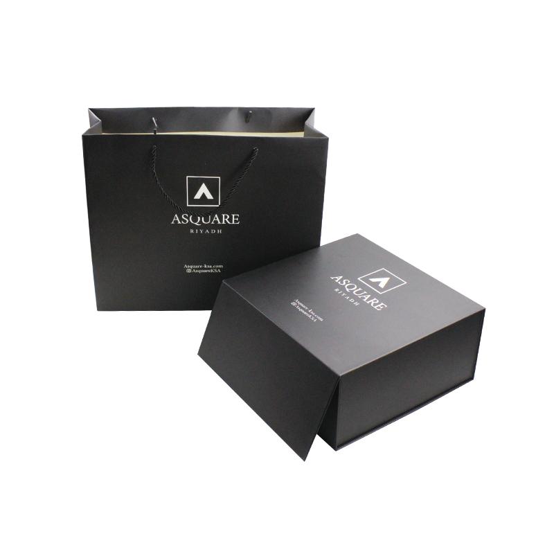 Classico scatole pieghevoli nere Realizzate in carta patinata da 157 g/m² plastificata con truciolato rigido di alta qualità da 2 mm. Con stampa in nero e pellicola antigraffio su tutta la superficie. Come confezione regalo, possiamo anche stampare il sacchetto di carta abbinato alle scatole regalo.