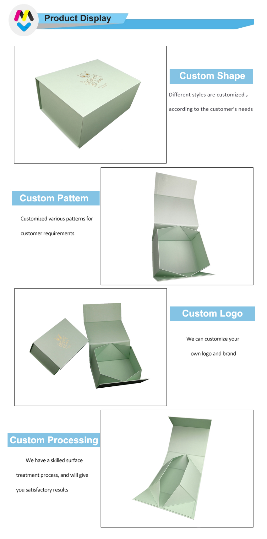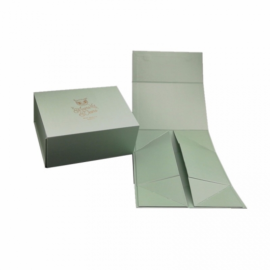 Questo è un colore verde scatole di carta pieghevoli che ha fatto su carta patinata C2S da 157 g + cartoncino grigio da 1200 g, stampa a colori sia all'esterno che all'interno della scatola con logo stampato in lamina d'oro.