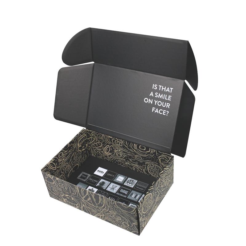 Scatole di spedizione in cartone ondulato nero opaco stampate su misura in fabbrica