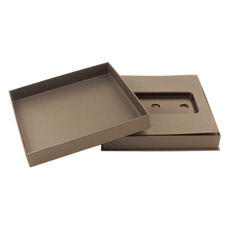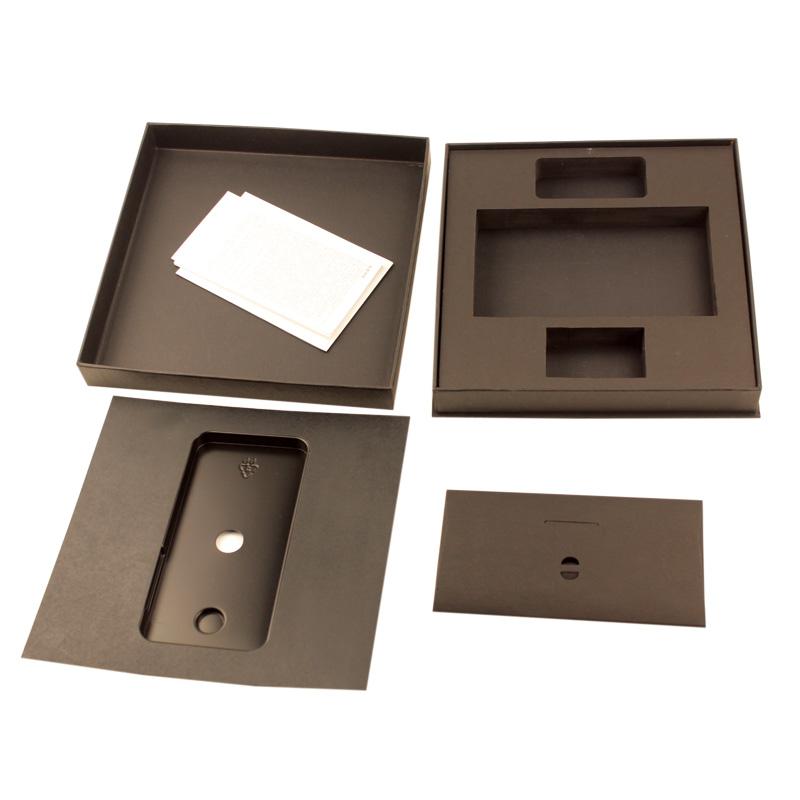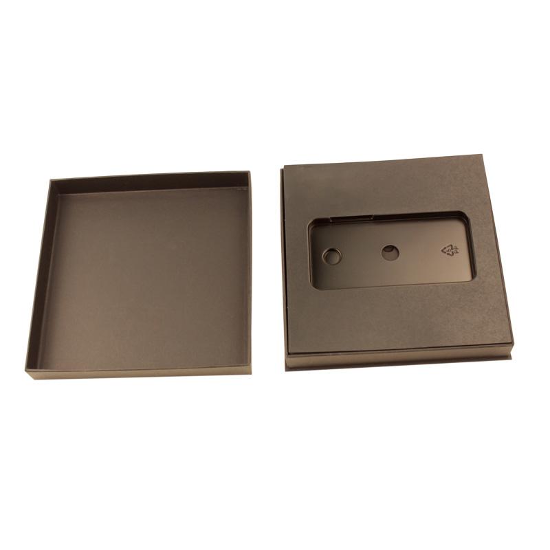 Con misure di 25x25x6 cm, realizzata con un tipo di carta speciale con un motivo particolare, carta patinata da 157 g e cartone grigio spesso 2 mm, la scatola è molto bella e di alta classe.