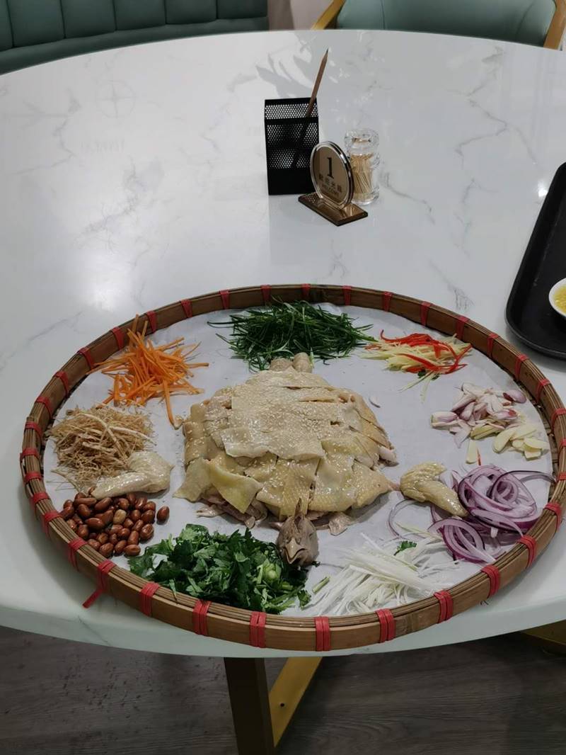Dopo la deriva e il vetro, abbiamo assaggiato il famoso cibo: il pollo Qingyuan. È così delizioso che il piatto si è svuotato in un batter d'occhio.