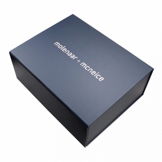 Questo è un bianco scatola magnetica per imballaggio blu che ha fatto realizzata con carta patinata C2S + cartone grigio da 4 mm, il logo sulla parte esterna del coperchio è stampato in lamina rosa, nastri biadesivi sui quattro angoli. È una scatola di cartone rigido, resistente e robusta.