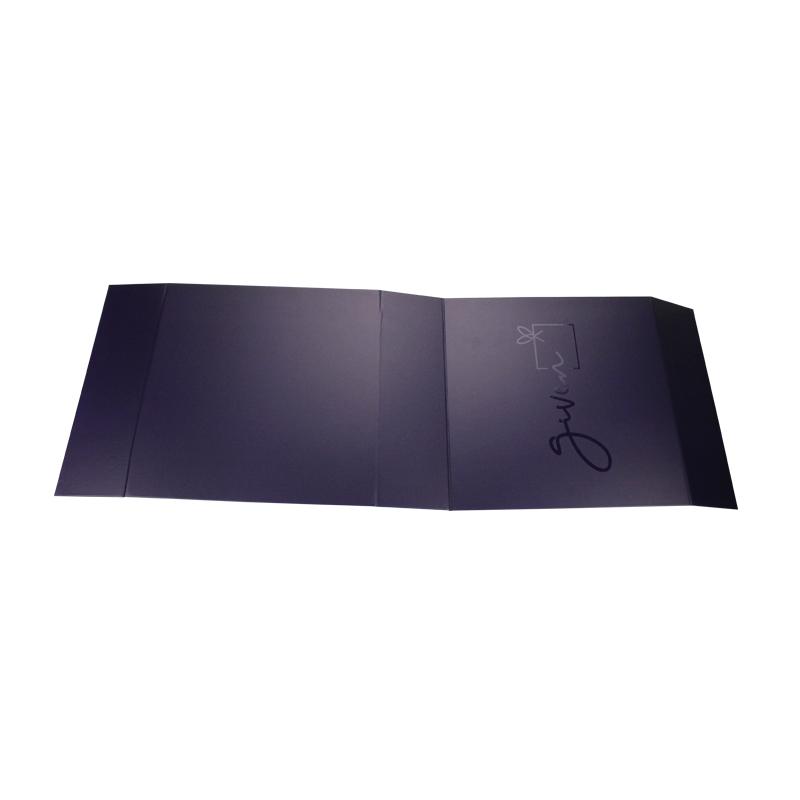 Questo è un viola intenso scatola rigida pieghevole con un logo stampato UV. Il design unico fa risaltare il tuo prodotto