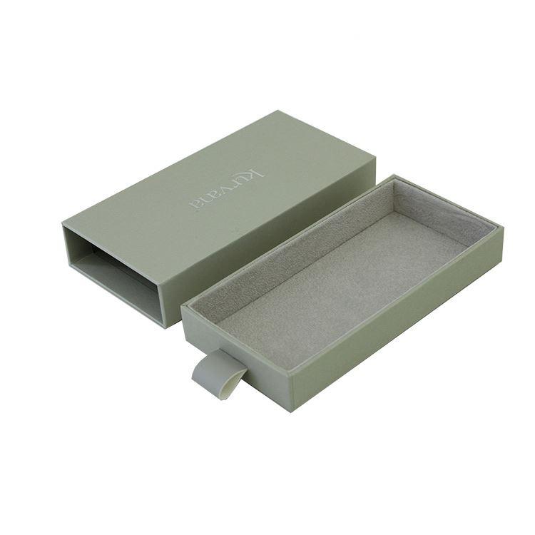 Scatola di imballaggio con cassetto scorrevole montato in velluto grigio di lusso