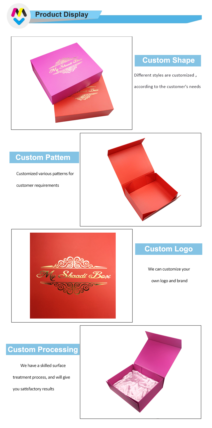 Nota: tutte le foto dei prodotti che abbiamo pubblicato sul nostro sito web sono solo per riferimento sul tipo di imballaggio che possiamo realizzare, non significano che vendiamo lo stesso prodotto in magazzino. Ci concentriamo su imballaggi di carta personalizzati di qualsiasi dimensione/colore/struttura e così via.