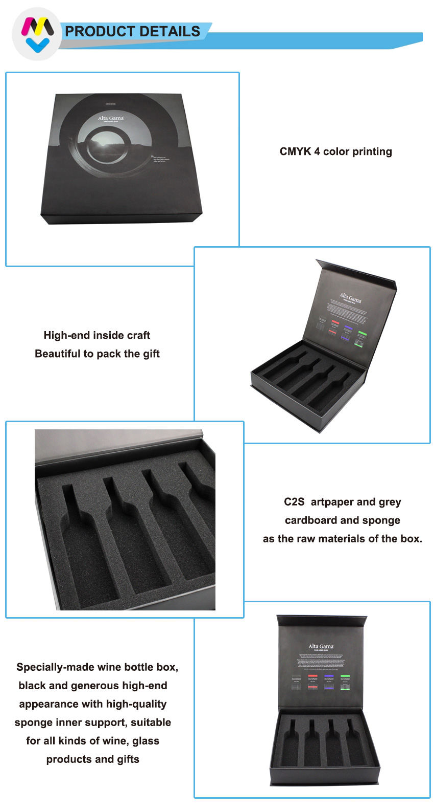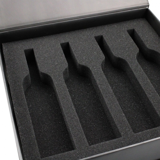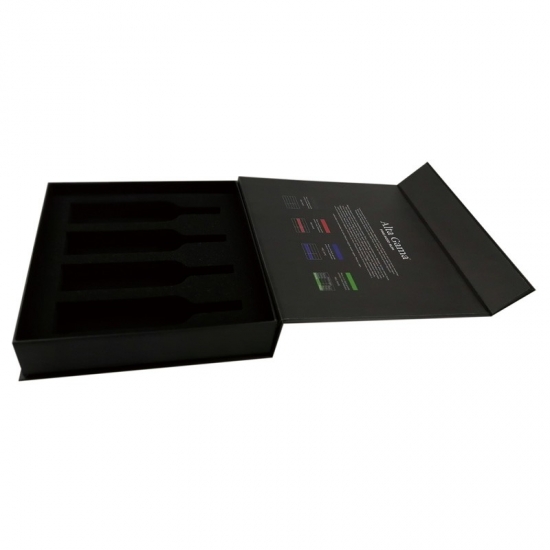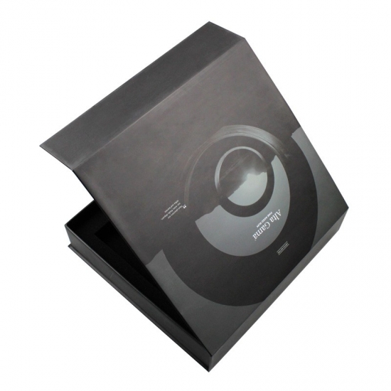 cartone grigio mm e spugna interna in schiuma, è una scatola regalo pieghevole molto magnetica, con stampa nera e laminazione opaca