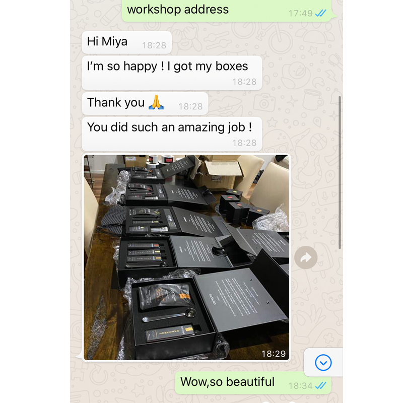 La signora Hall , un cliente dall'Australia , ha un suo marchio indipendente. È un grande onore incontrarla sul sito web. Dopo aver appreso che sta per iniziare un nuovo progetto sui prodotti della linea caffè, ha bisogno di un prodotto di alta qualità. scatola regalo magnetica e un impressionante scatole regalo magnetiche con nastro
