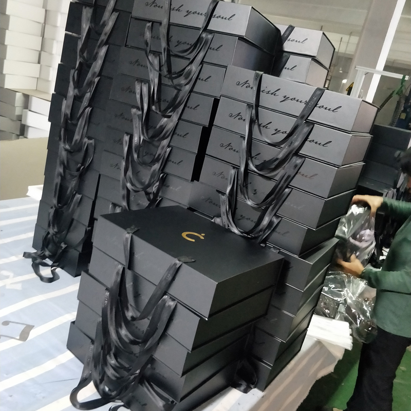 In base alle sue esigenze, adotteremo la stampa e la goffratura in lamina d'oro, in modo che il logo risulti brillante e stupisca i clienti. Dopo aver completato il design del modello della scatola regalo magnetica, inizieremo a trasformare il design astratto in un prodotto concreto. Quando ha visto i nostri campioni, è rimasta soddisfatta del fatto che avessimo soddisfatto le sue esigenze di imballaggio, abbiamo confermato l'ordine rapidamente e avviato la produzione.