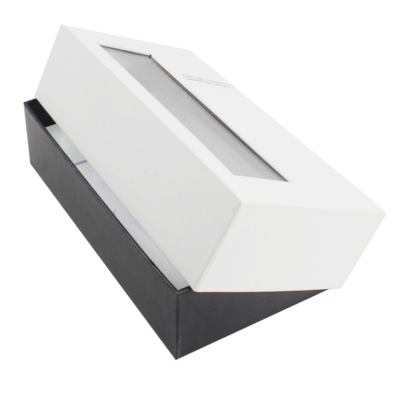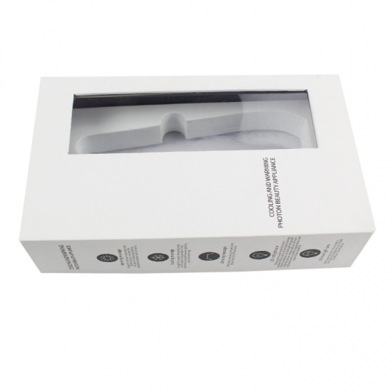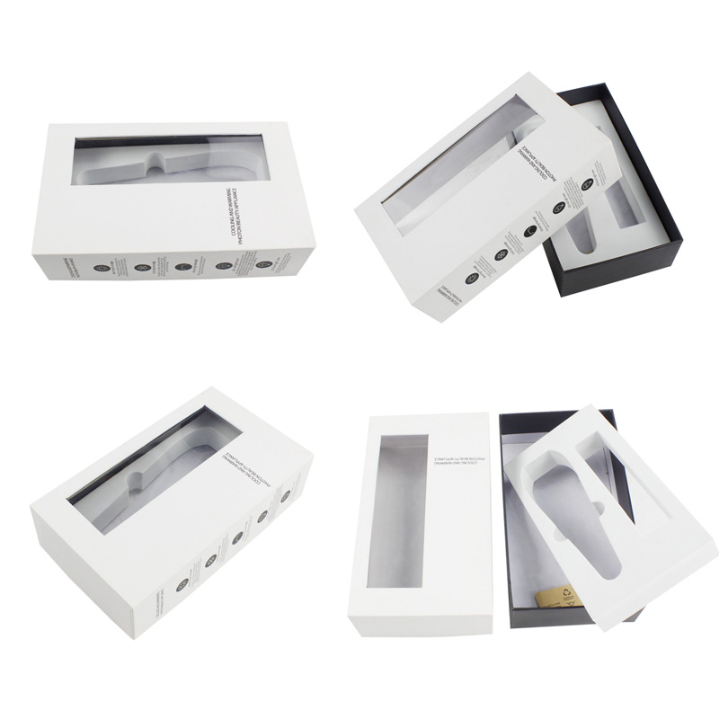 Questo è un Coperchio e base scatola che ha fatto da 157 g di carta patinata C2S + 1200 g di cartone grigio, coperchio con finestra in PVC trasparente per mostrare i prodotti all'interno, all'interno della scatola è presente un inserto imbottito in EVA bianco sagomato personalizzato.