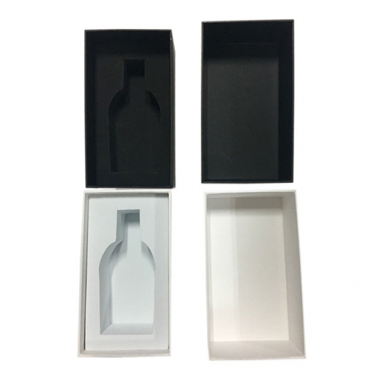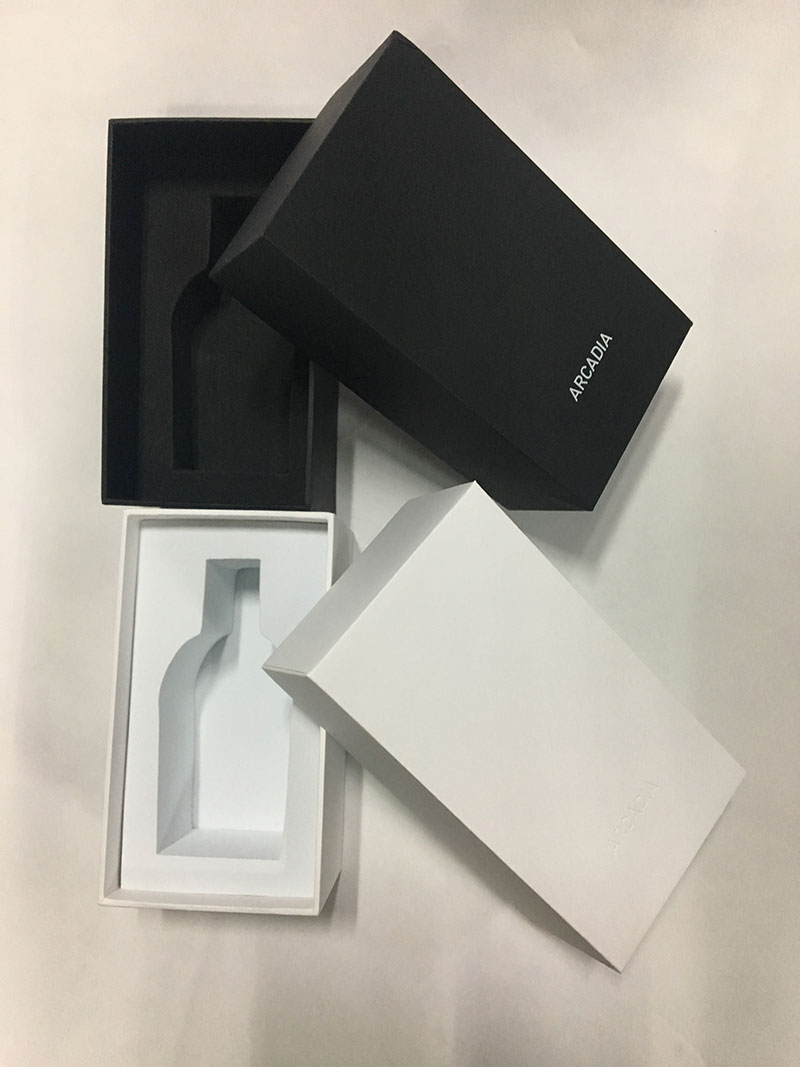 realizzato con carta speciale nera/carta artistica C2S da 157 g + cartone grigio da 1200 g, inserto in schiuma EVA nera/bianca di buona qualità e resistente che manterrà i prodotti in posizione.