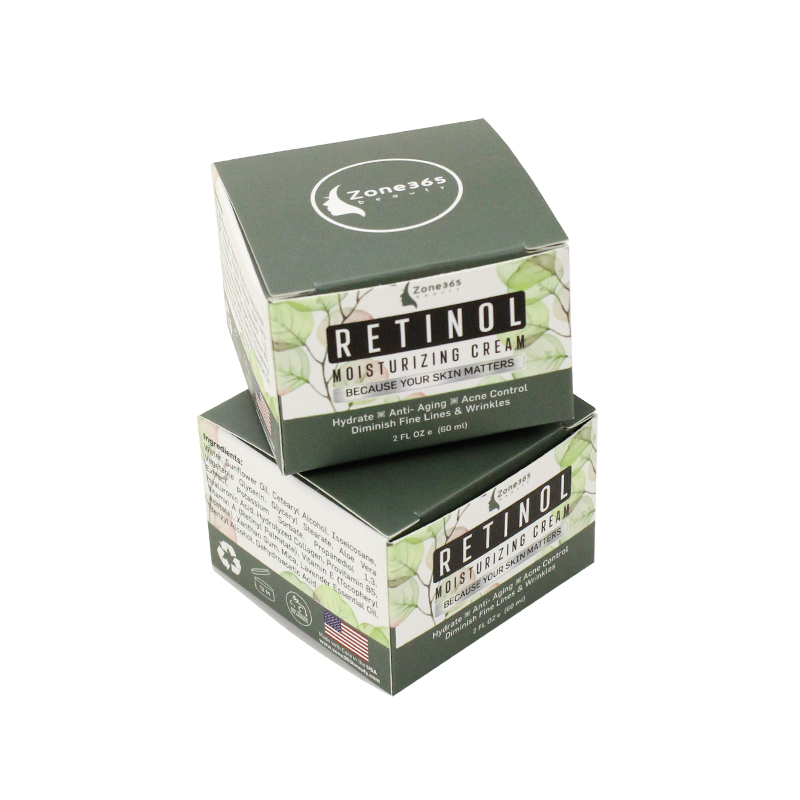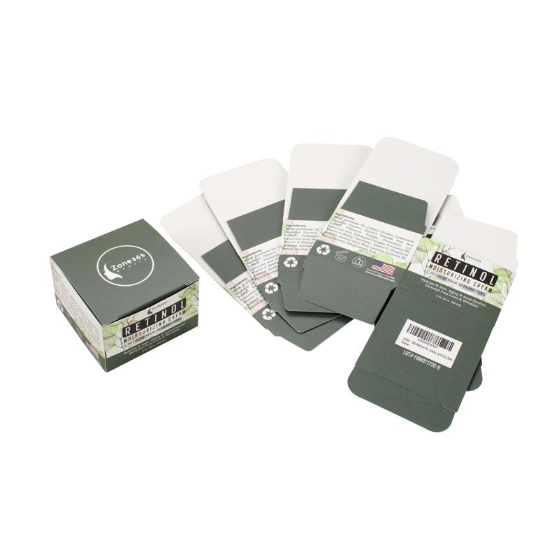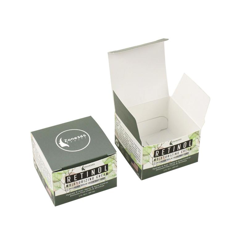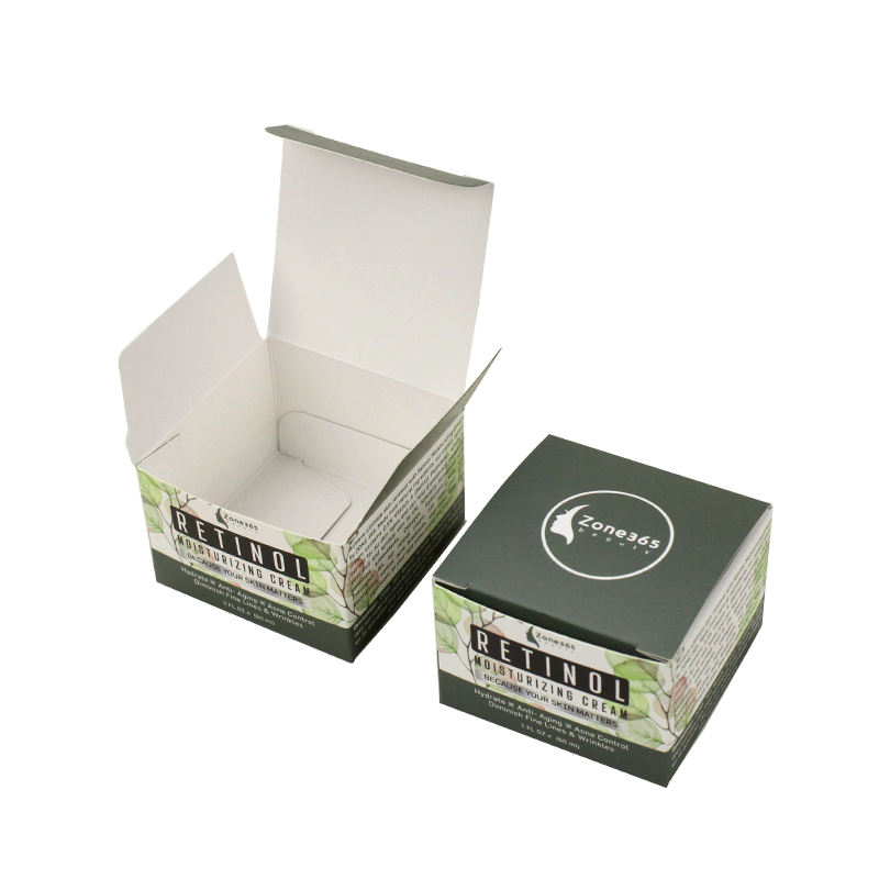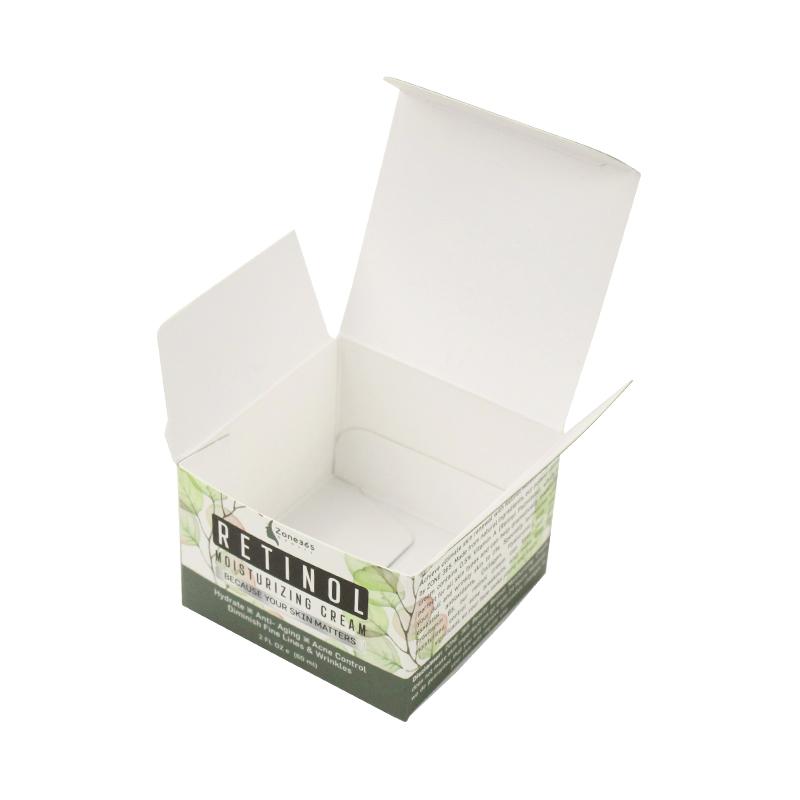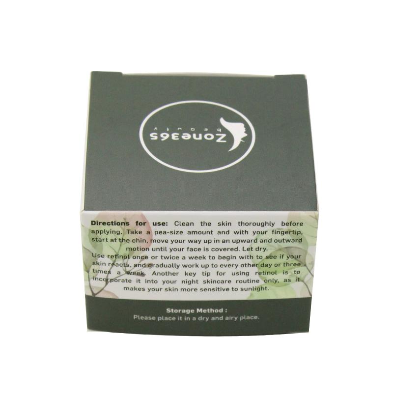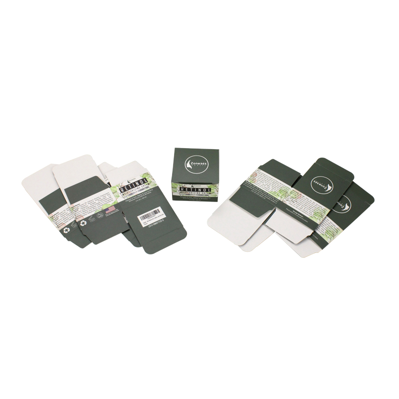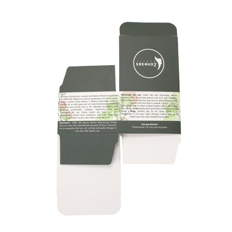 Questo è un scatola di cartone morbida per cosmetici che ha fatto con carta patinata da 350 g/m² su un lato, l'esterno della scatola è pieno di testo e logo stampati, include istruzioni e codice a barre, l'interno è bianco e vuoto senza alcuna stampa.