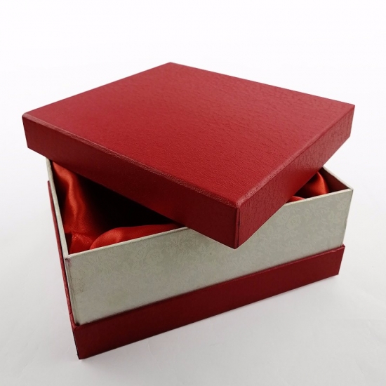 Questo è un set di lusso coperchio rosso e scatola di base che ha fatto con carta rossa speciale + cartone grigio da 1200 g e fodera in raso e gommapiuma abbinati all'interno della scatola.