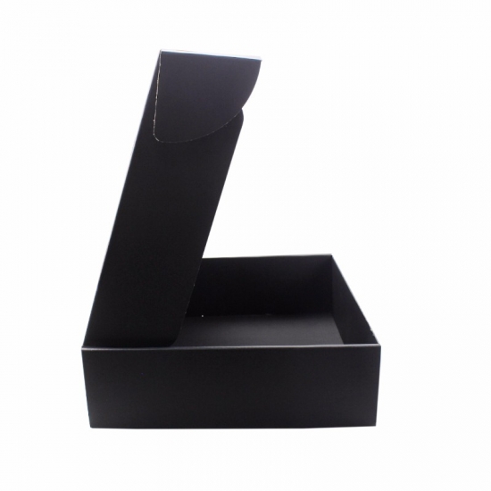 Si tratta di scatole per spedizioni nere realizzate in cartoncino nero da 250 g + cartone ondulato BE + cartoncino nero da 250 g, il logo all'interno e all'esterno della scatola è stampato in lamina d'oro.