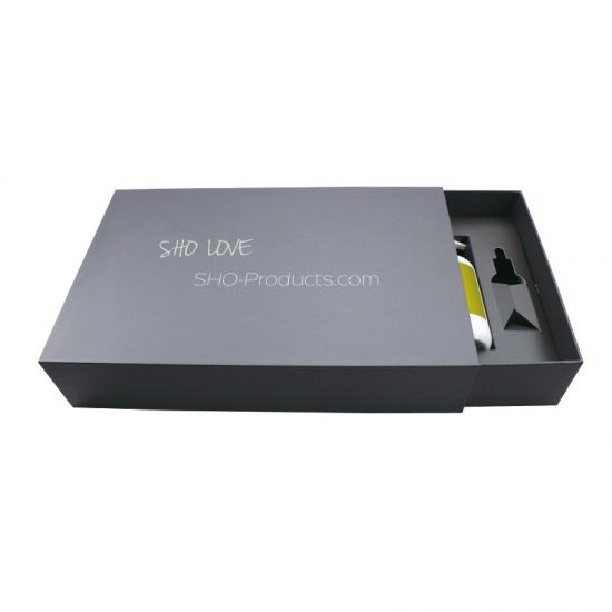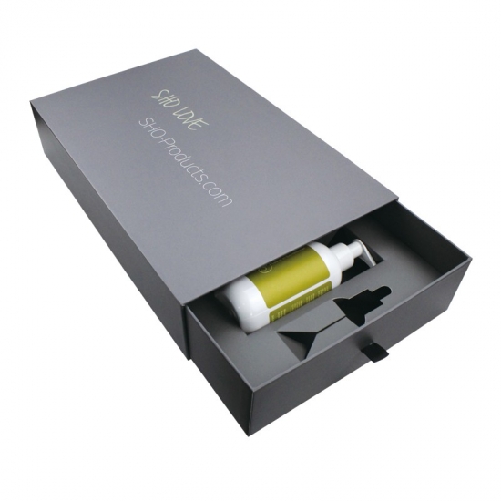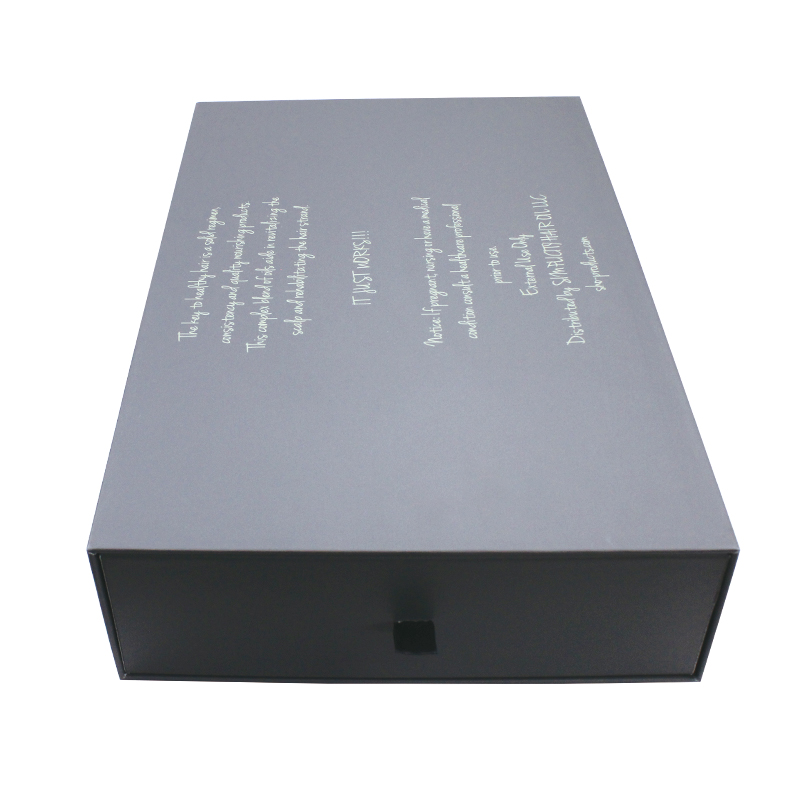 È un colore grigio opaco scatola con cassetto scorrevole che ha fatto da 157 g di carta artistica C2S + 1200 g di cartone grigio , pieno di stampa grigia sul davanti e sul retro con logo e testo, finitura superficiale opaca.