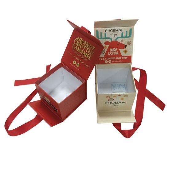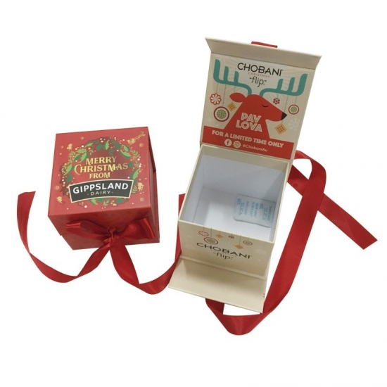 Si tratta di piccole scatole regalo di Natale magnetiche piatte che ha fatto da 157 g di carta artistica C2S + 1200 g di cartoncino grigio abbinato nastro rosso.