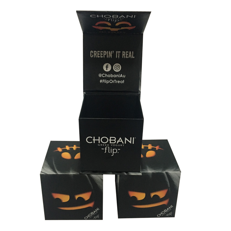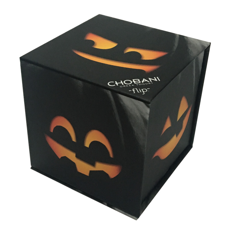 Questo è un colore nero scatola rigida pieghevole che ha fatto su carta artistica C2S da 157 g + cartone grigio da 1200 g, stampa a colori di una zucca su entrambi i lati della scatola.