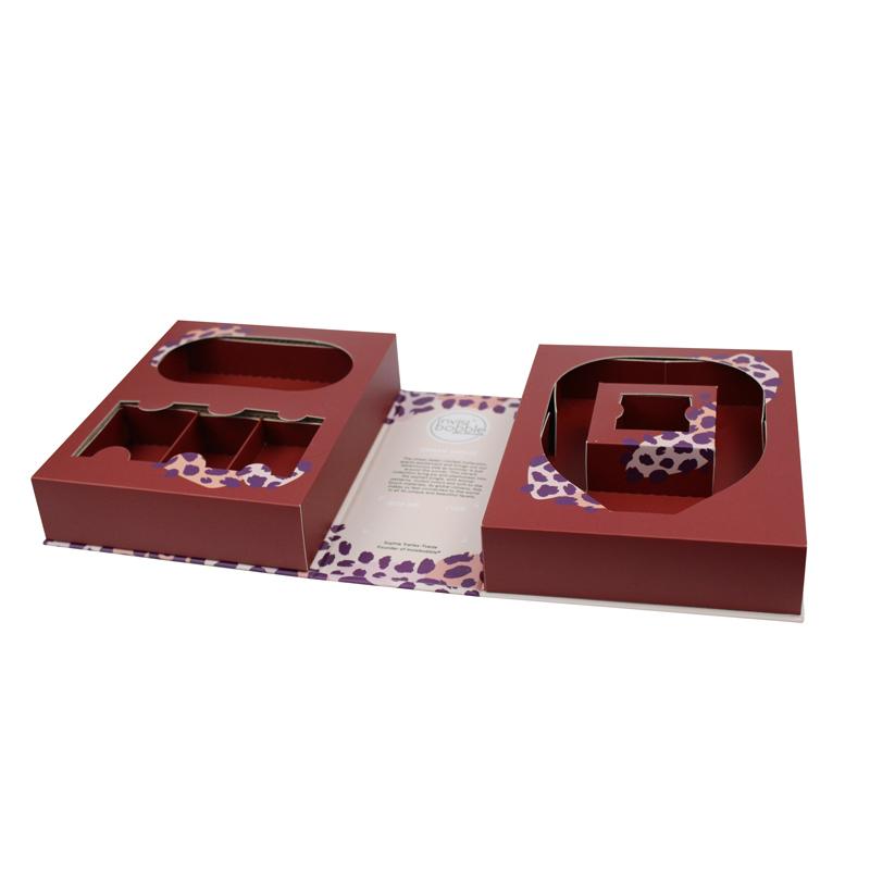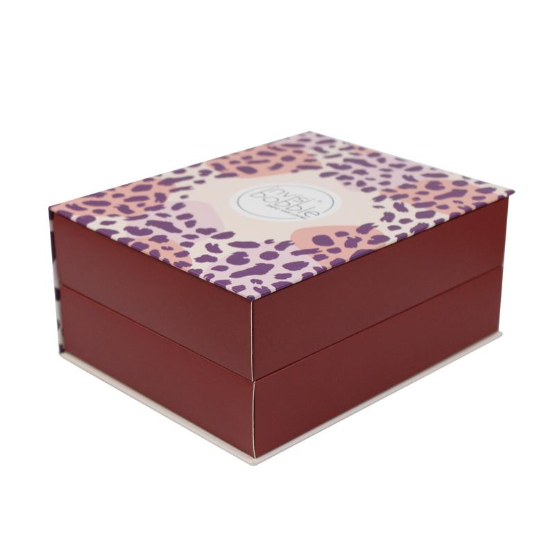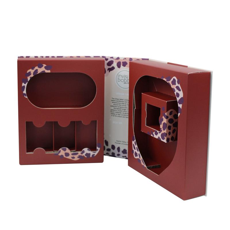 Scatole per prodotti per la cura dei capelli dal design accattivante, realizzate in cartone rigido all'esterno e cartone ondulato all'interno per creare divisori per ogni prodotto. Dall'esterno, si presenta come una lussuosa scatola in cartone rigido per prodotti di alta qualità. Con l'inserto in cartone ondulato, può essere più economica rispetto all'inserto in schiuma normalmente utilizzato e più esteticamente gradevole rispetto a quello in cartone.