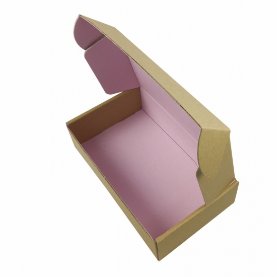 Scatole per imballaggio piatte per la spedizione, personalizzate con logo, prezzo conveniente ma di buona qualità, con interno marrone nero personalizzato.