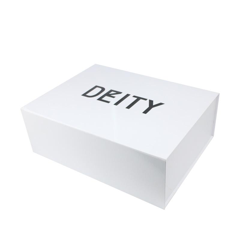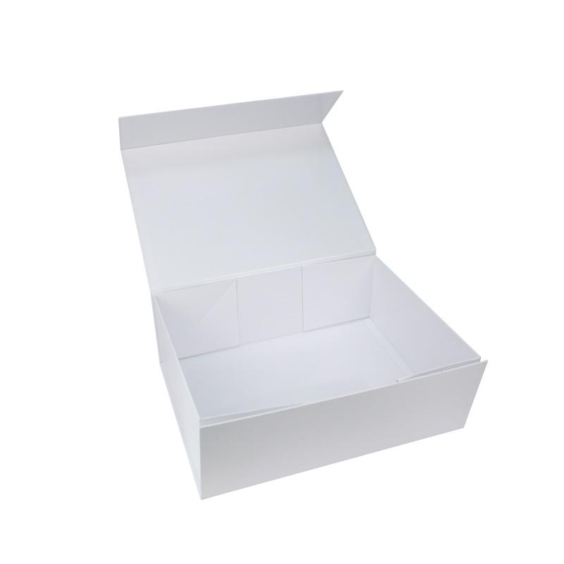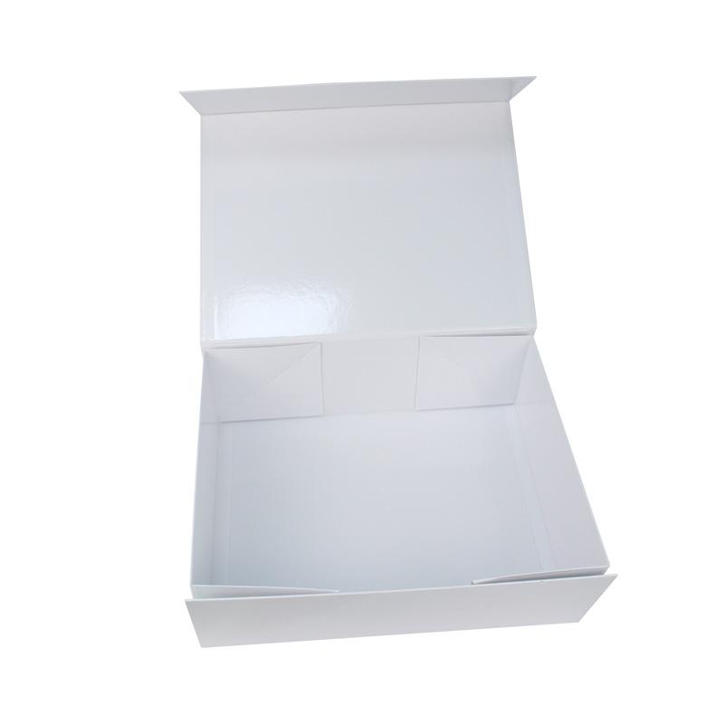 Scatola regalo pieghevole con laminazione lucida bianca e logo personalizzato
