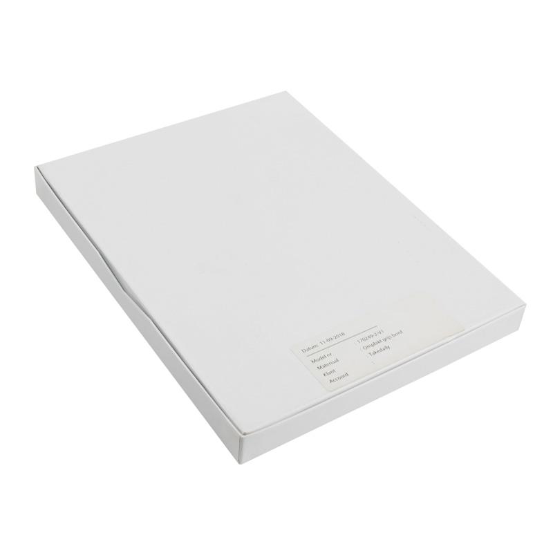 2) Materiale: plastificazione C2S Artpaper da 157 gsm, cartone grigio da 1200 gsm