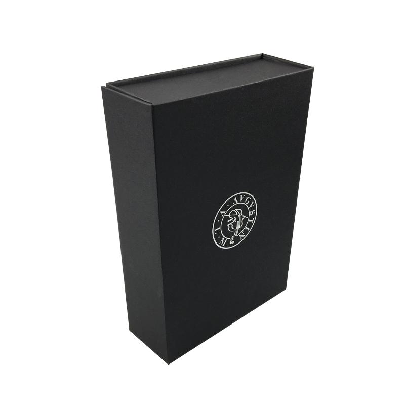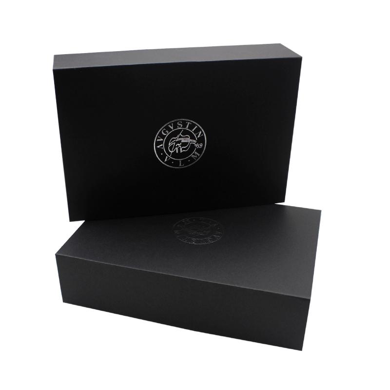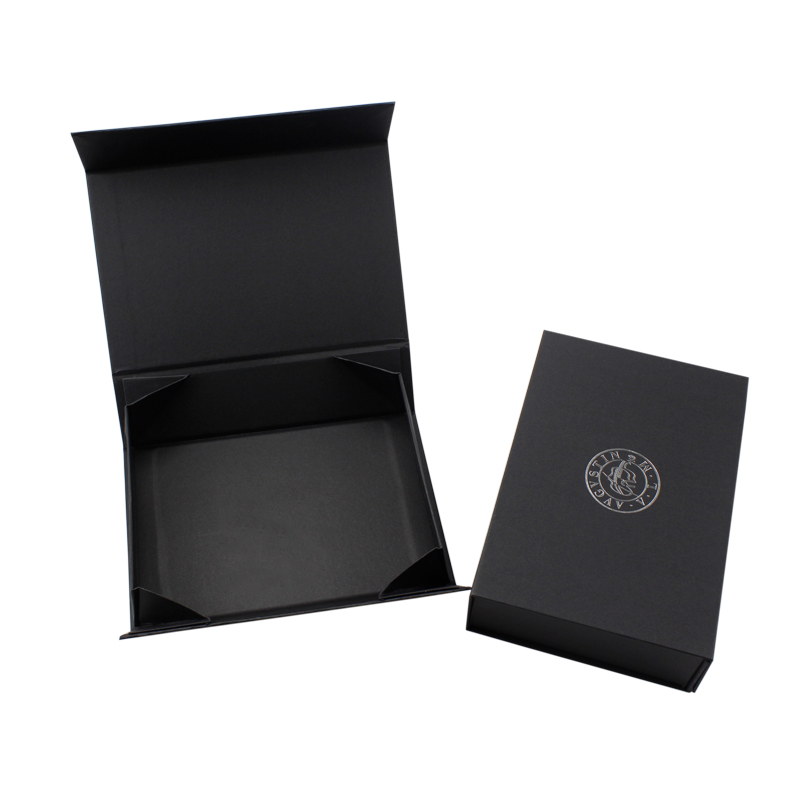 Questo è un classico nero di lusso nero scatole regalo piatte all'ingrosso scatola regalo pieghevole con logo stampato in lamina d'argento, confezione adatta per prodotti di bellezza